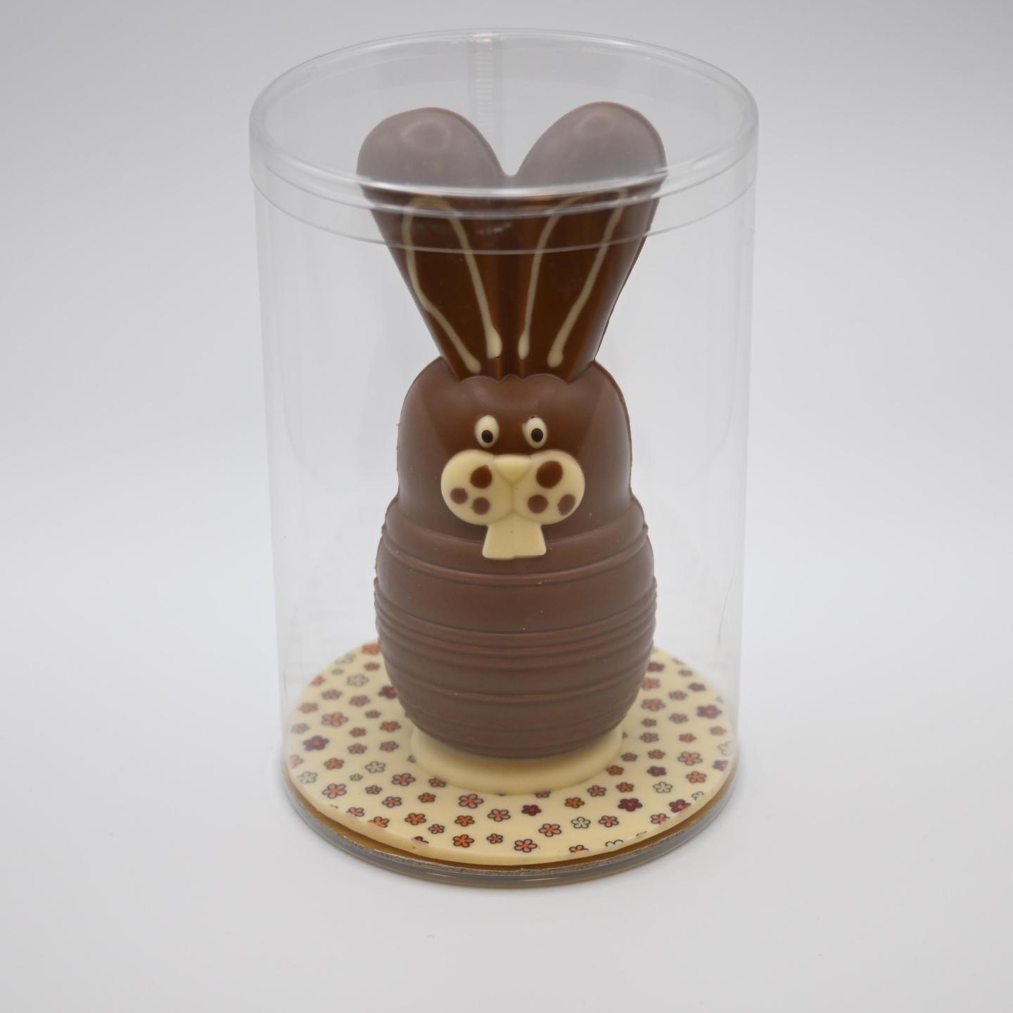 Dieser kleine Geselle aus unserer leckeren Vollmilchschokolade sitzt auf kleinen Blüten aus weißer Schokolade.